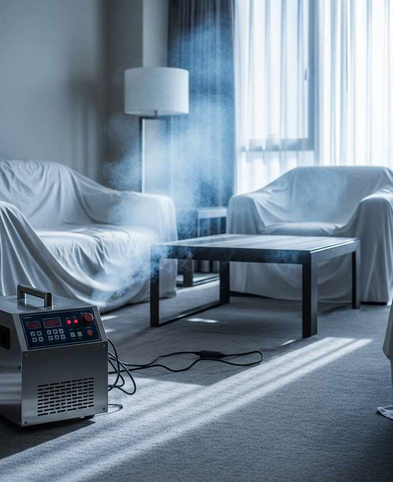 3. Dezynfekcja i neutralizacja– ozon działa na powierzchnie, powietrze, tkaniny oraz instalacje wentylacyjne.